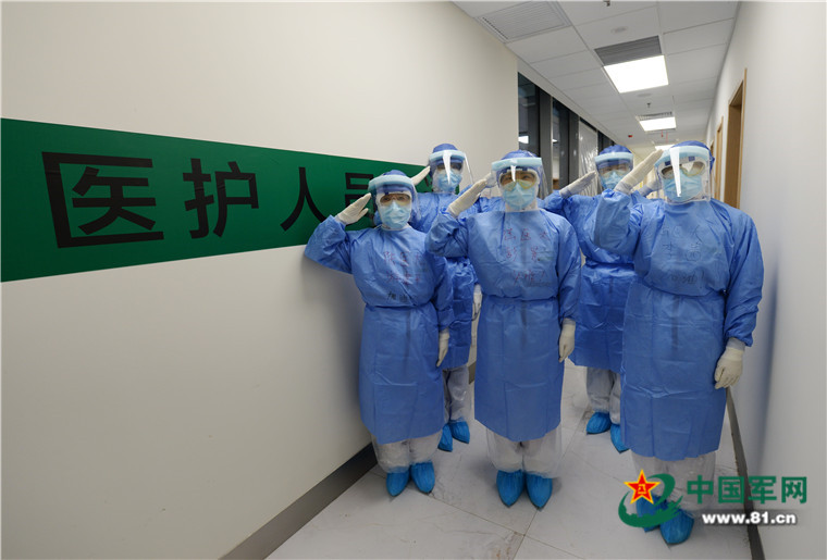 军队支援湖北医疗队医务人员走进病房前敬一个军礼,我们不辱使命,战“疫”必胜!