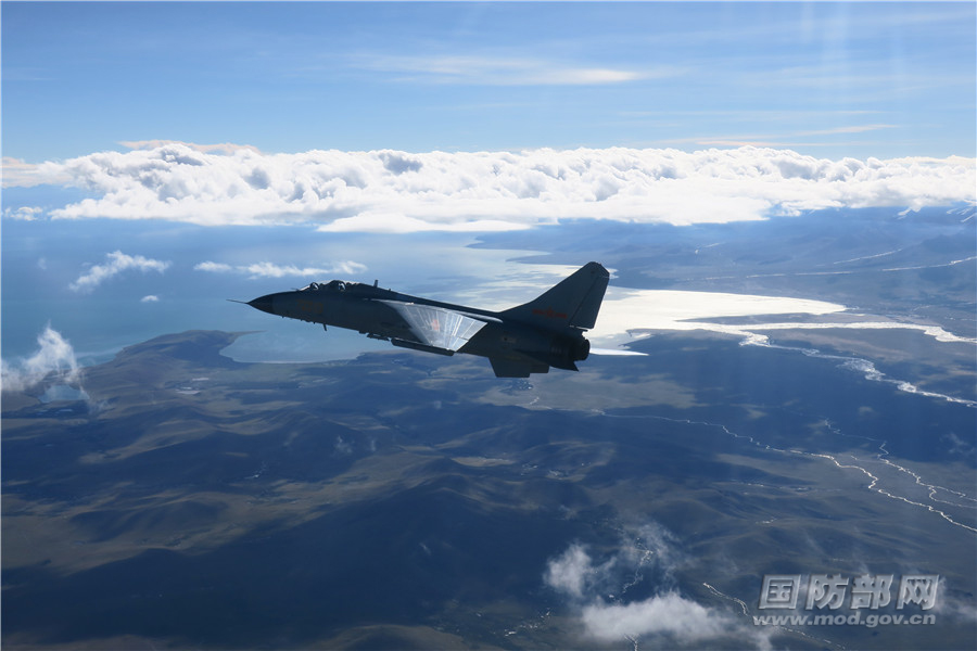 歼轰-7战机穿云破雾,巡航于星罗棋布的雪域湖泊。