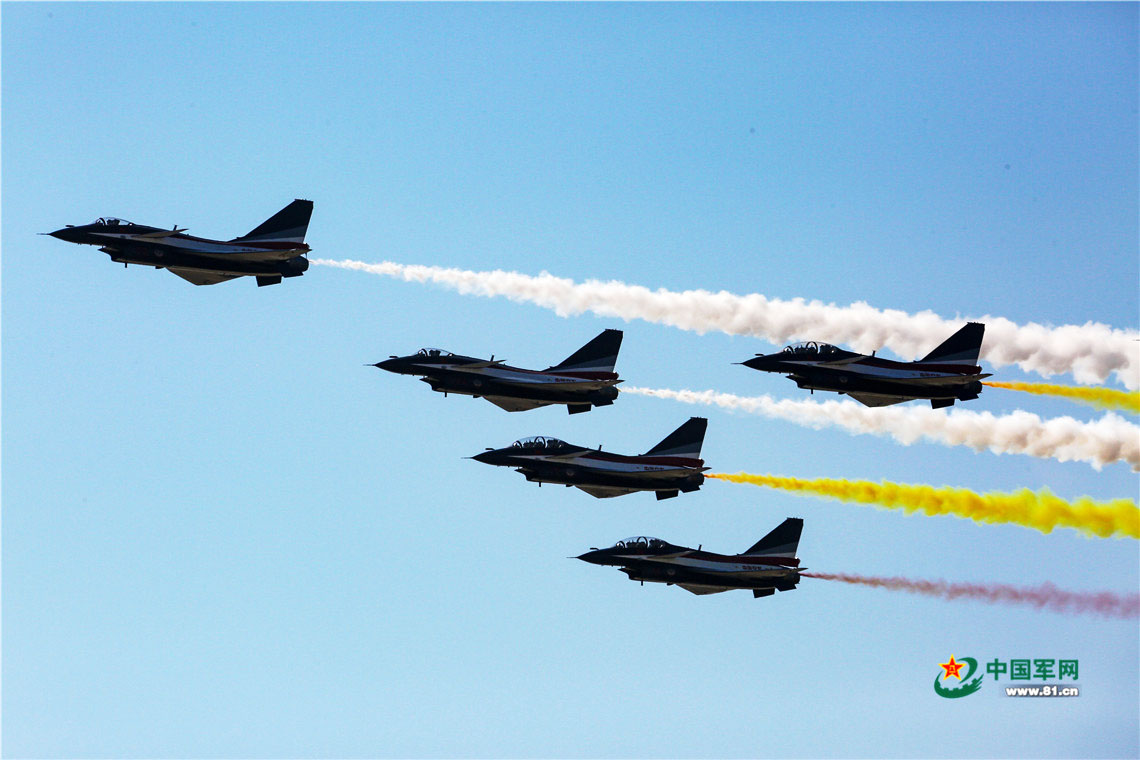 八一飞行表演队在进行编队飞行表演。中国军网记者冯开华 摄