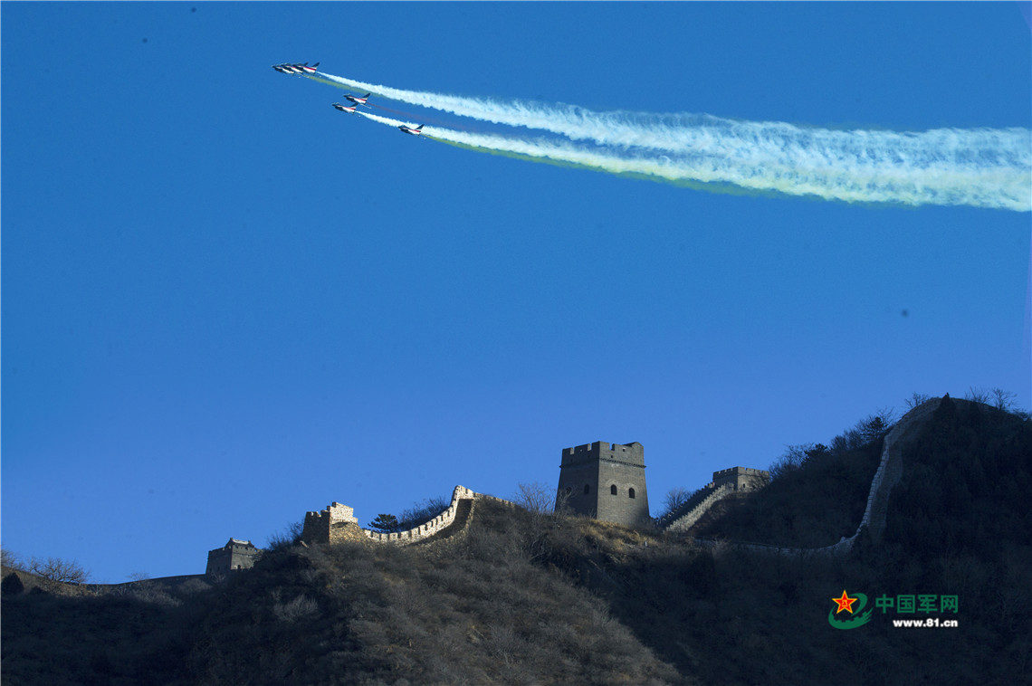 2018年12月6日,八一飞行表演队飞越黄崖关长城。刘川 摄