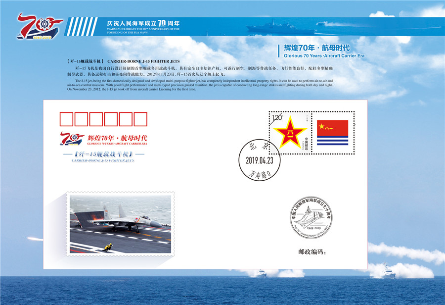 “辉煌70年-航母时代”纪念封第7枚——歼-15舰载战斗机