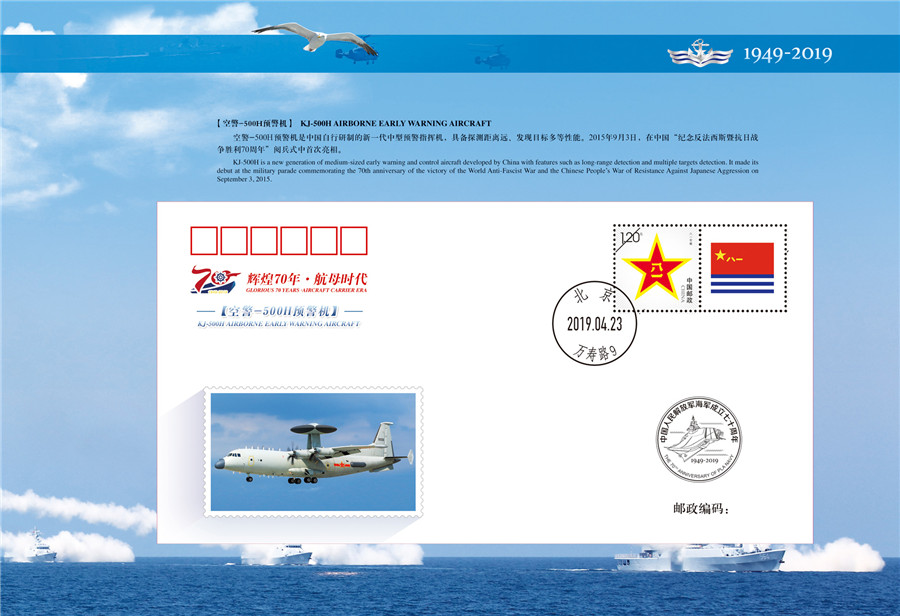 “辉煌70年-航母时代”纪念封第8枚——空警-500H预警机