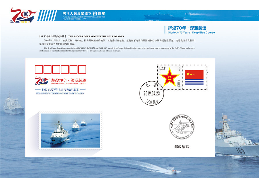 “辉煌70年-深蓝航迹”纪念封第7枚——亚丁湾索马里海域护航