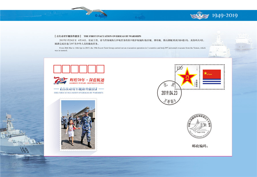 “辉煌70年-深蓝航迹”纪念封第8枚——首次动用军舰海外撤侨