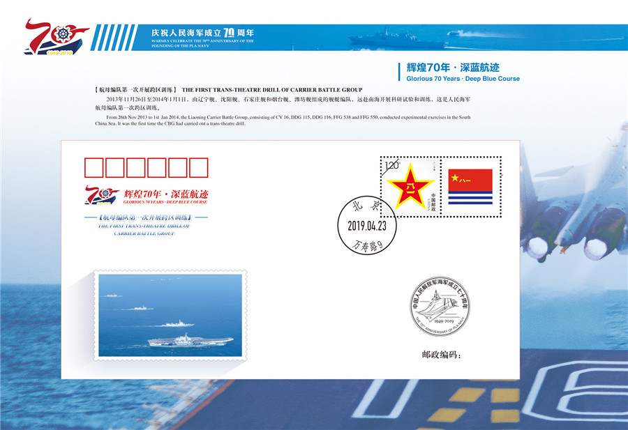 “辉煌70年-深蓝航迹”纪念封第9枚——航母编队第一次开展跨区训练