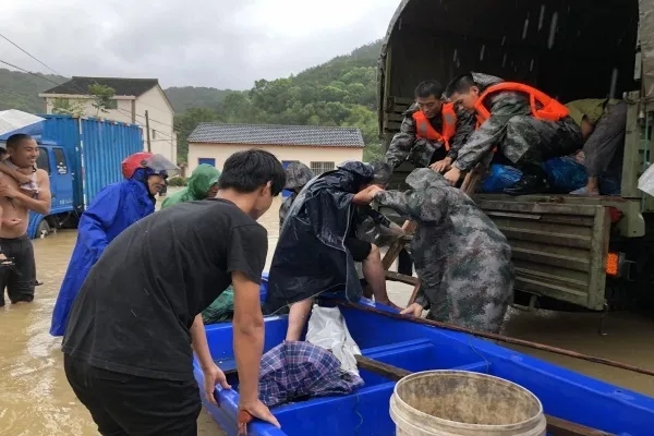 8月10日早上6时,许无锡联勤保障中心驻浙某综合仓库官兵接到求助电话第一时间出动官兵、4台轮式车辆